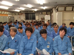 バタバタしておりまして、ブログの更新が遅くなりましてスミマセン!一昨日(9月19日)と本日(9月21日)の2回に分けて、取引先様の「安全決起大会」の周知会を、当社3階会議室にて18:30より開催しております。一昨日はお取引先様ご来賓1名(部長様)と、当社社員及び協力班の方々の78名に出席して頂きました。本日も同人数の予定です。一日の現場作業が終わってからの皆様のご出席と、当社の安全活動へご理解ご協力、心より御礼申し上げます。「安全」は一人一人が自覚を持って行動しないと達成できません。万が一災害や事故で仲間を失う(死んでしまう)ようなことがあると、①家族が悲しむ・本人が無念・収入を失う(最悪の場合は第二の不幸に繋がりかねません・・・)、②会社は有能な技術者・技能者を失うことになる、③災害・事故を起こしてしまう会社には、間違いなく次の仕事は来なくなるでしょう→会社立ち行かなくなる。・・・想像もしたくないほど、怖く恐ろしいことばっかりです。しつこくいつも言っておりますが、「一声掛け合って、自分(と家族)を守り、仲間(と家族)を守ろう!」、また改めて「災害や事故を発生させない!」という強い決意をみんなで持とう!お願いします!(写真は9月19日(第1回目)の様子)