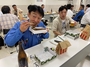 毎年恒例の決算日慰労会・・・今年は3密を避けるため2日間にわけての開催です。こまめにアルコール消毒・飲食時以外はマスク着用・換気・ソーシャルディスタンス・お酌禁止など、感染対策を講じて行いました。(高価な空気除菌器をガンガンにまわしてます)